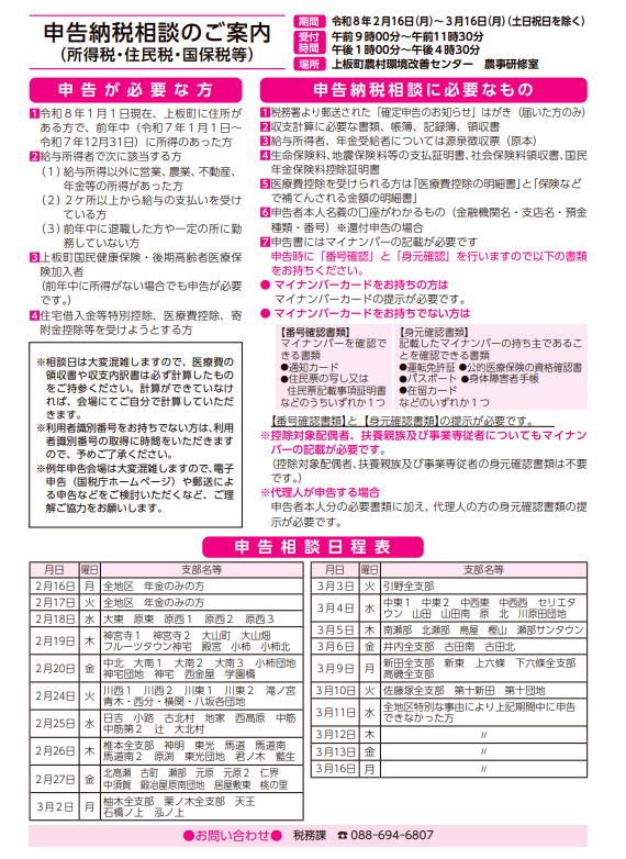 鳴門税務署(TEL:088-685-4101)でも確定申告会場が設けられていますのでご利用ください。